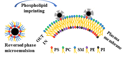 图1.磷脂分子表位印迹及其对质膜识别的示意图
