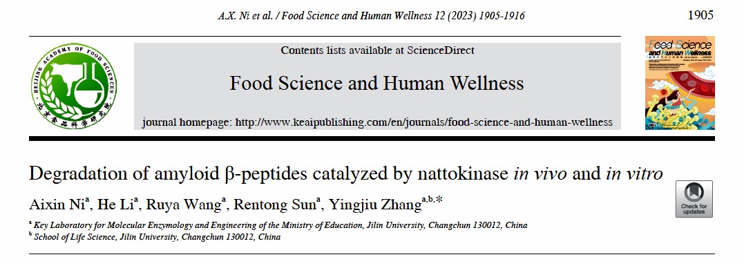 分子酶学工程教育部重点实验室的张应玖教授课题组在获得纳豆激酶(Nattokinase,NK)的基础上,研究发现NK可以有效催化Aβ42聚集体的降解,同时可降低生理条件下血液中Aβs的水平,并间接促进了阿尔茨海默症模型鼠脑内Aβ42水平的下降和淀粉样斑块的减少。该成果以“Degradation of amyloid β-peptides catalyzed by nattokinase in vivo and in vitro”为题,发表在《Food Science and Human Wellness》(影响因子8.022)上。论文第一完成单位为快猫视频