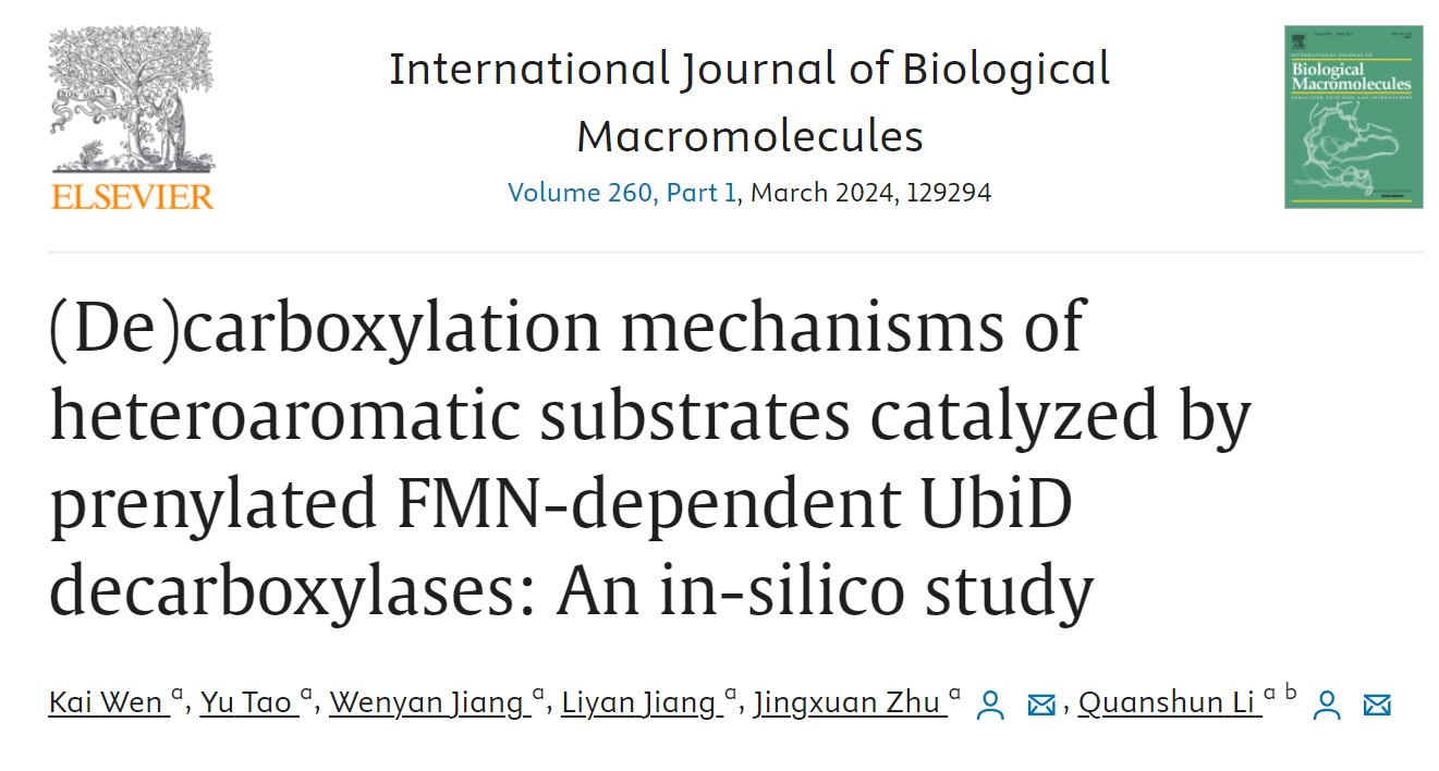 分子酶学工程教育部重点实验室李全顺教授团队立足于国家双碳战略,基于计算机辅助策略,系统探究“碳”高值转化酶UbiD脱羧酶催化杂环底物脱羧/羧化反应的理论机制。以UbiD可逆脱羧酶催化CO2固定,同时能够实现高价值羧化产物杂芳族羧酸的生产,在医学、农业和化工行业中具有极高的应用价值。本研究中,以计算模拟策略为工具,确定了羧化反应中的质子转移步骤是整个可逆脱羧/羧化反应的限速步骤,为采用“稳定过渡态”策略进行UbiD酶的分子改造与设计提供理论支撑。相关研究“(De)carboxylation mechanisms of heteroaromatic substrates catalyzed by prenylated FMN-dependent UbiD decarboxylases: An in-silico study”发表于国际学术期刊International Journal of Biological Macromolecules。论文第一完成单位为快猫视频