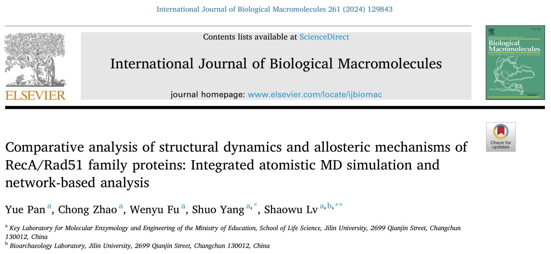 吕绍武教授、杨朔副教授科研团队深入解析了RecA/Rad51重组酶家族的结构动态和功能调控机制,为理解这些关键蛋白在同源重组中的作用提供了新的视角。研究成果于2024年1月30号在学术期刊《International Journal of Biological Macromolecules》正式发表(Comparative analysis of structural dynamics and allosteric mechanisms of RecA/Rad51 family proteins: Integrated atomistic MD simulation and network-based analysis)。论文第一完成单位为快猫视频