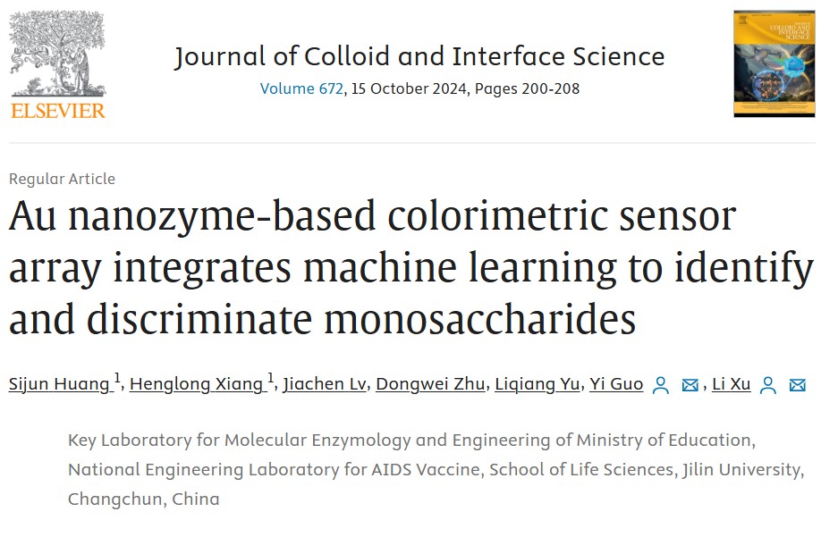 分子酶学工程教育部重点实验室徐力教授、郭轶教授团队报道了基于金纳米酶比色传感器阵列集成机器学习识别和区分单糖的方法。由于不同的单糖表现出不同的氧化还原特性,而金纳米酶可以应用O2、ABTS+•或[Ag(NH3)2]+作为电子受体,以不同的速度催化不同的单糖氧化,并引起不同的显色反应。以此建立的传感器阵列可以产生交叉响应信号,所收集的信号通过线性判别分析(LDA)和层次聚类分析(HCA)来实现不同的单糖或其混合物的区分。此外,可以应用基于传感器阵列的神经网络回归模型同时预测样品中不同单糖浓度。研究论文“Au nanozyme-based colorimetric sensor array integrates machine learning to identify and discriminate monosaccharides”发表在国际学术期刊《Journal of Colloid and Interface Science》上。论文第一完成单位为快猫视频