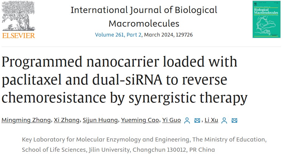 此外,在纳米药物载体方面,为增加PTX的水溶性以及缓解肿瘤耐药性,徐力郭轶教授团队以甲基丙烯酸羟丙酯(HPMA)作为亲水外壳,制备得到一种具有良好安全性和稳定性的阳离子共嵌段聚合物PPEMMRA,实现了多种耐药蛋白siRNA和PTX的共载和分步释放,在体内可以成功地将药物递送到肿瘤组织中。多种siRNA和PTX联用,可以抑制肿瘤细胞迁移,促进活性氧(ROS)释放,诱导肿瘤细胞凋亡,在耐药肿瘤细胞中具有强烈的抗肿瘤效果,进而逆转耐药性发生。研究论文“Programmed nanocarrier loaded with paclitaxel and dual-siRNA to reverse chemoresistance by synergistic therapy”发表在国际学术期刊《International Journal of Biological Macromolecules》上。论文第一完成单位为快猫视频