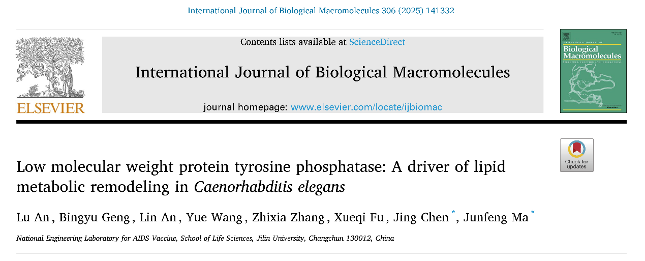 该成果以《Low molecular weight protein tyrosine phosphatase: A driver of lipid metabolic remodeling in Caenorhabditis elegans》为题,发表于国际学术期刊International Journal of Biological Macromolecules。此项研究工作得到了国家自然科学基金、国家重点研发计划以及吉林省科技发展项目的支持。论文的完成单位为快猫视频