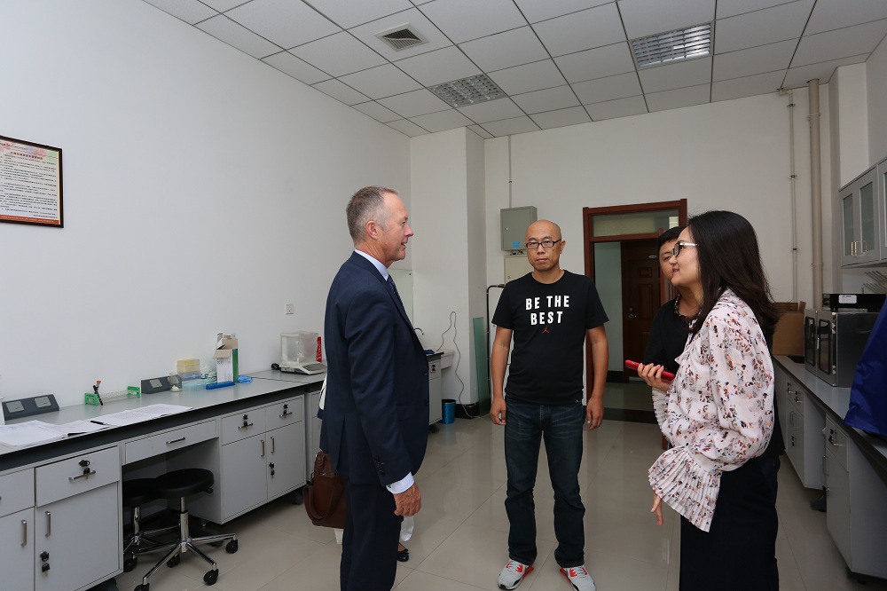 副院长马俊锋首先代表学院欢迎桑普森教授的来访,并对快猫视频 发展情况与学科优势进行了介绍。接下来双方就学生联合培养、合作科研等事宜进行了磋商,深入探讨了双方交流合作的可行性。座谈结束后,副院长马俊锋带领桑普森教授参观了我院公共技术中心,在参观过程中,对仪器的使用等问题进行了交流。