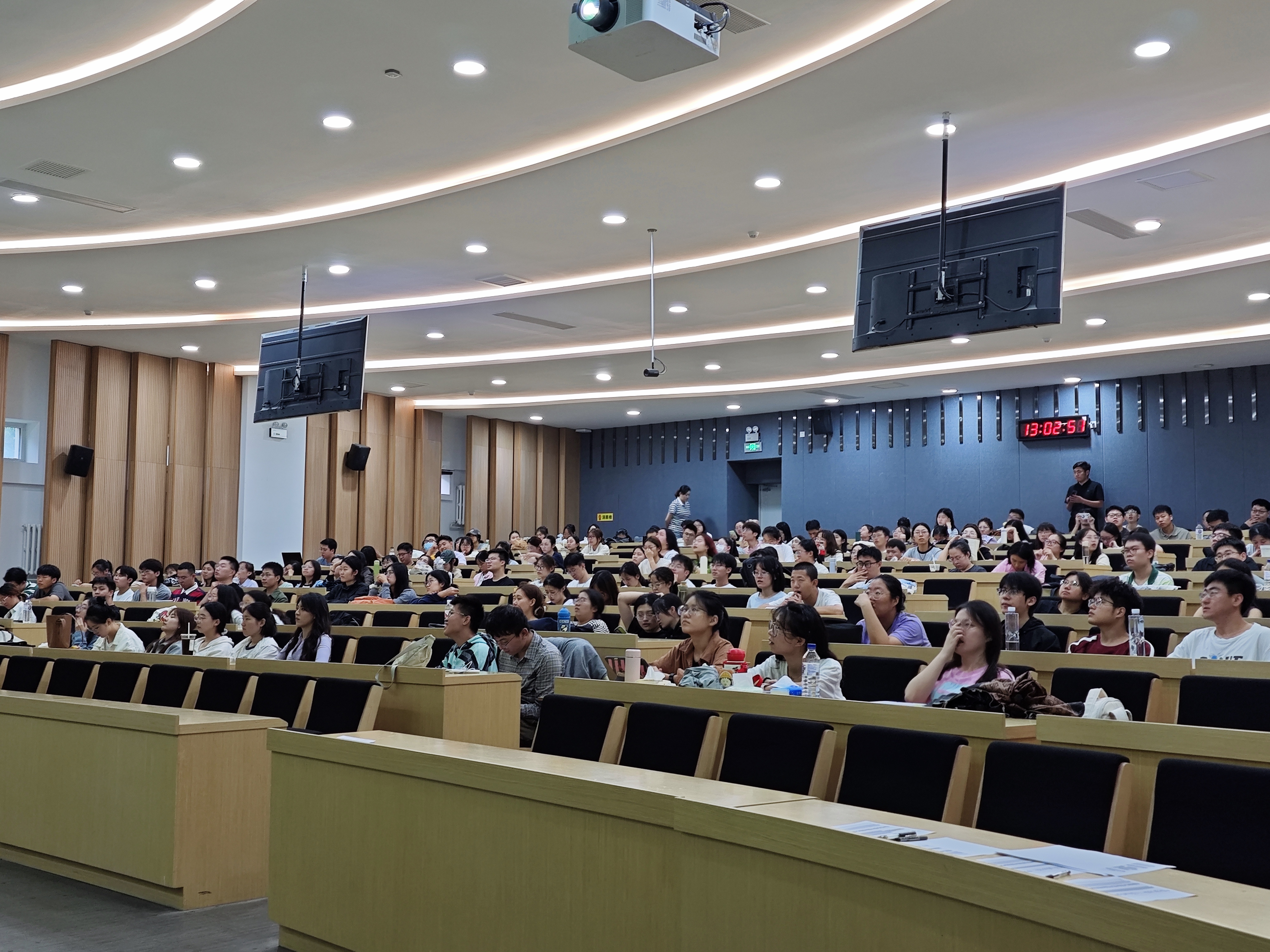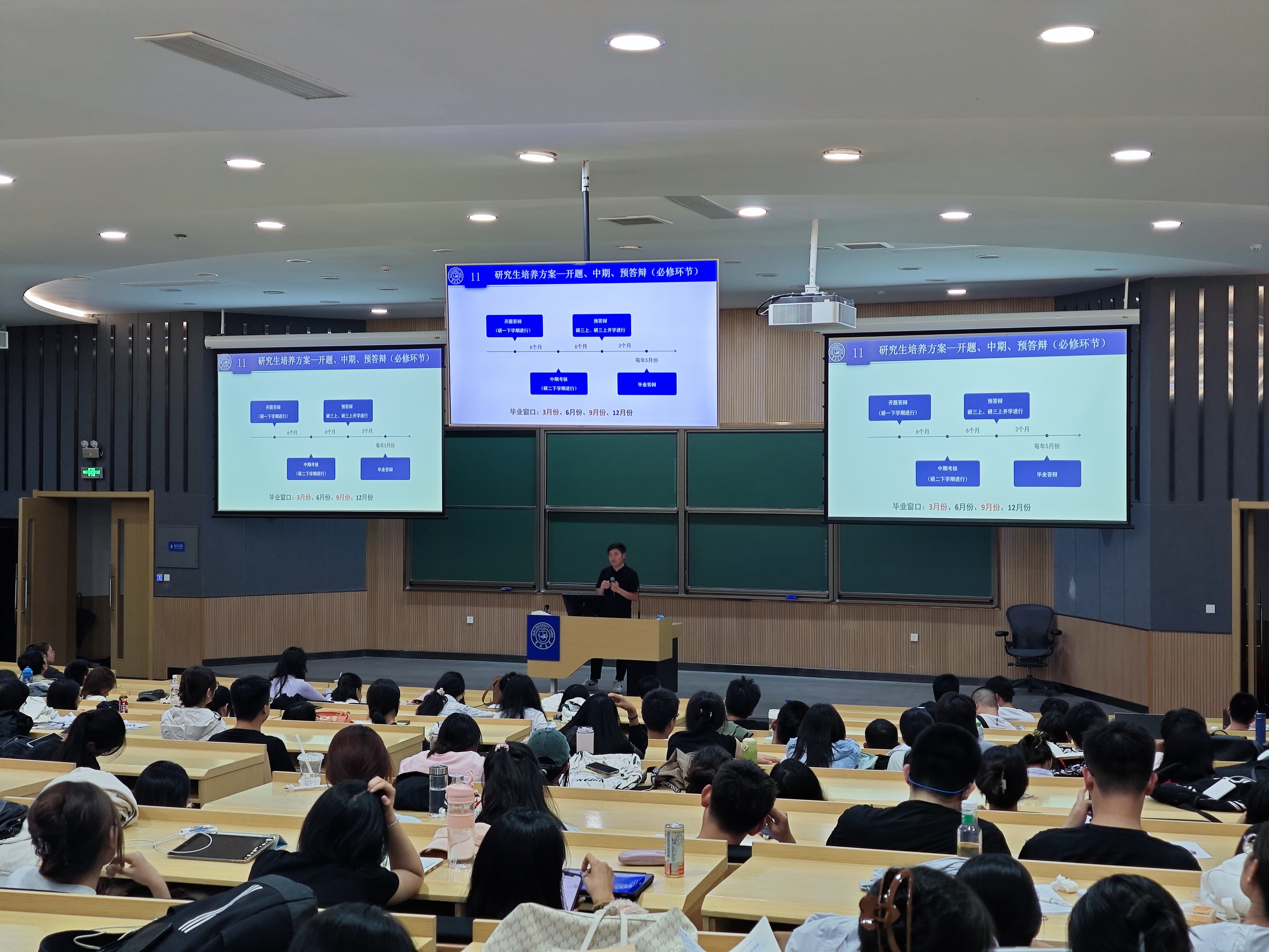 在逸夫楼第五阶梯教室举办了2024级研究生年级大会。本次大会由学院研究生辅导员任中帅主持,学院党委副书记林相友、研究生办公室主任王秀丽和2024级全体研究生参加年级大会。