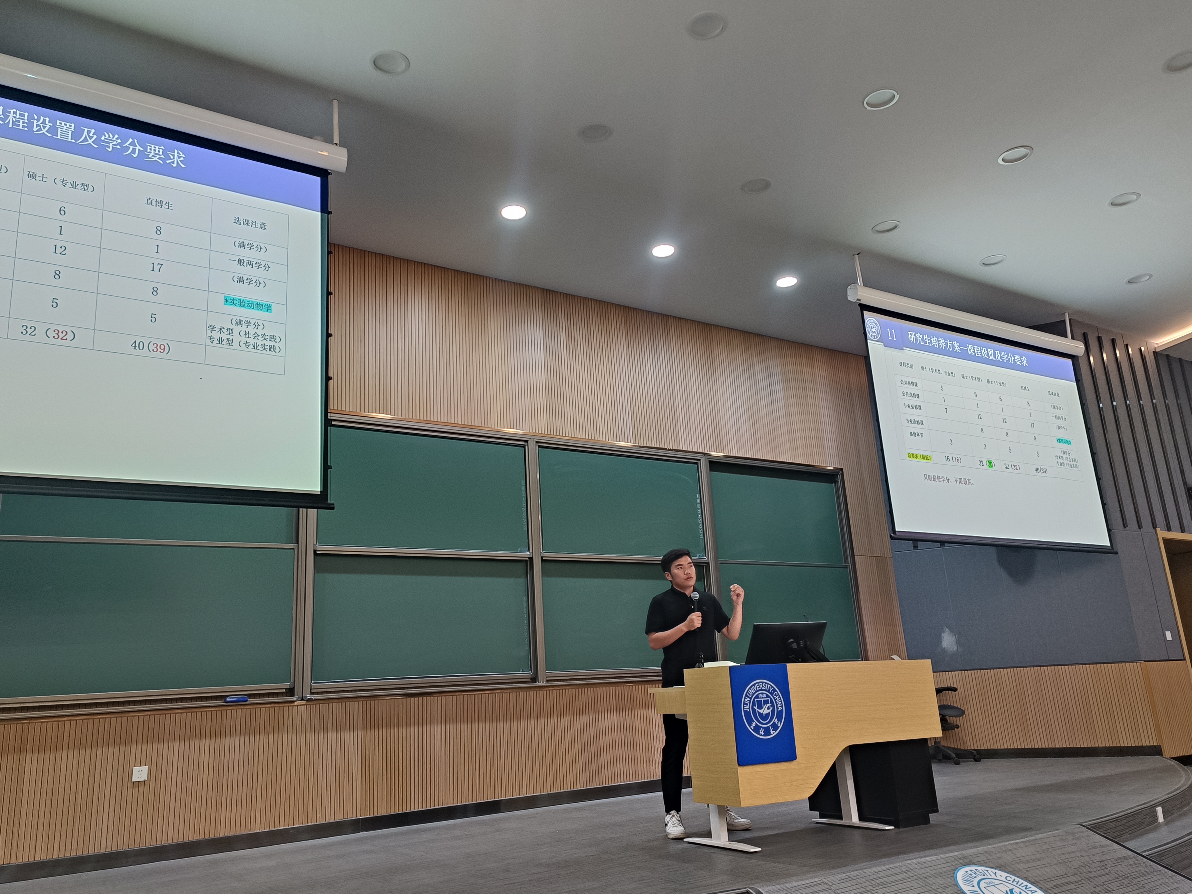 活动现场,研究生辅导员任中帅详细介绍了学院的研究生培养目标、课程设置、导师队伍、科研平台以及培养管理的各个环节,详细解读了各类研究生培养方案及注意事项;在研究生管理方面,从生活环境、课程学习、论文开题、中期考核到论文答辩,每个环节都明确了的要求和规范,确保研究生培养质量。同时,他还详细介绍了研究生的日常管理的相关规定,为研究生在校学习和生活奠定了建设基础。