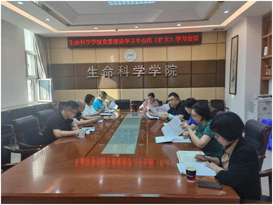 在生命科学楼335会议室召开理论学习中心组(扩大)学习会议。会议由学院党委书记白宇主持。