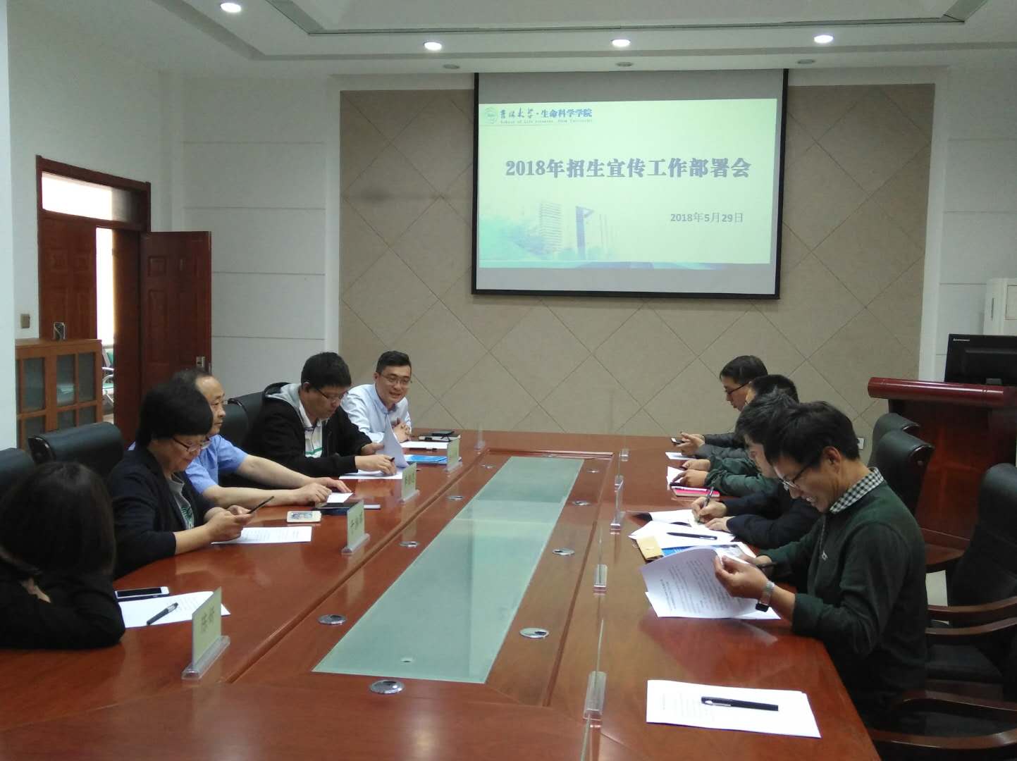 根据学校对本科招生工作的部署和要求,为保障我院招生宣传工作的有序开展,5月29日,在生命科学楼335会议室,召开了2018年招生宣传工作部署会。参加本次会议的有学校招生工作办公室信息科科长韩冰雪、院长于湘晖、党委书记李佰志,以及学院招生宣传工作小组的各位老师。会议由学院党委副书记崔帅主持。