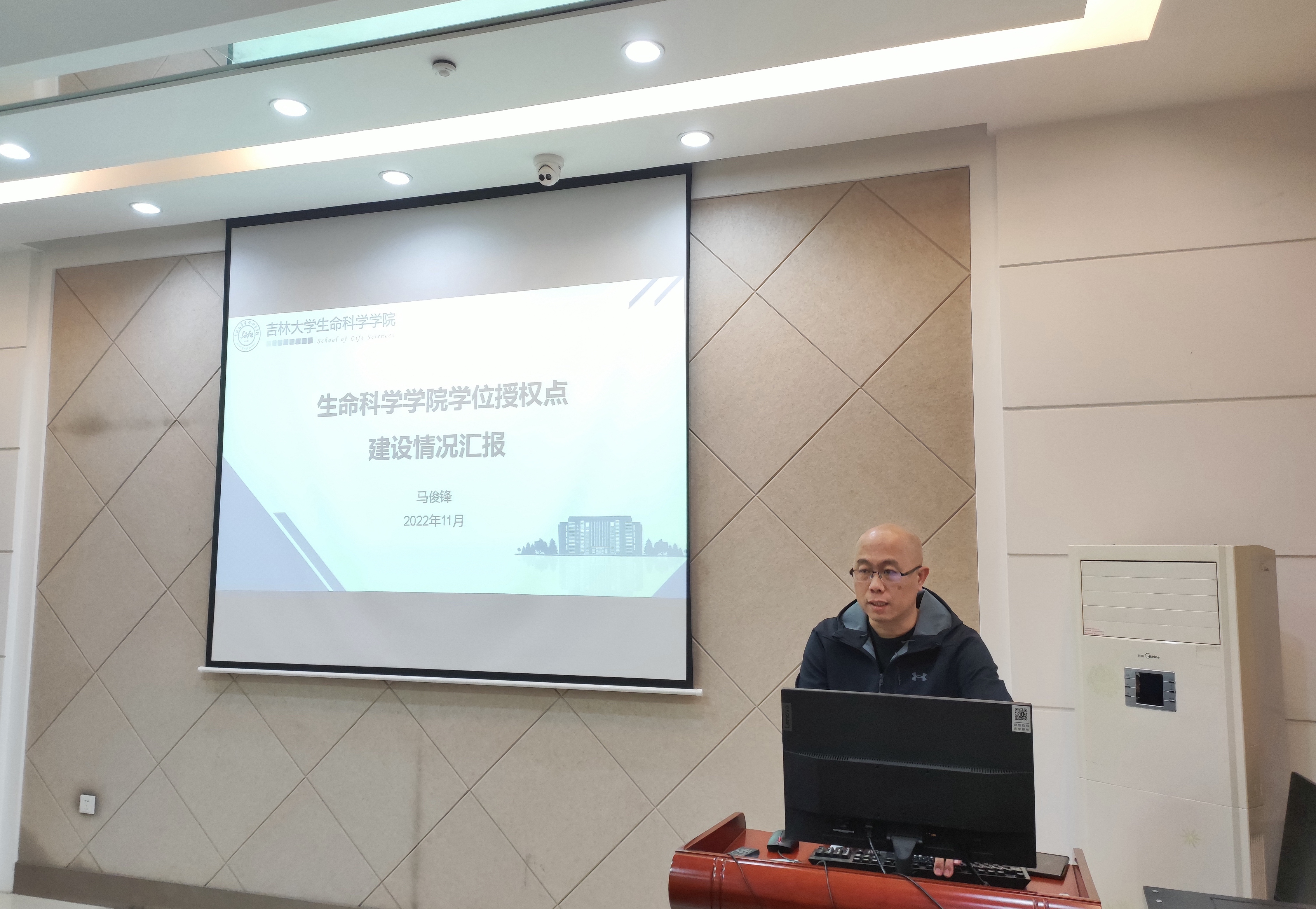 生物学学位分委会主席、学院副院长马俊锋汇报学院学位授权点建设相关情况。他从学院学位授权点的历史沿革、学院“基础学科”与“学科交叉”两条发展脉络入手,全面介绍了快猫视频