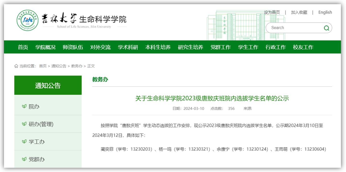 2023级唐敖庆班院内选拔工作。