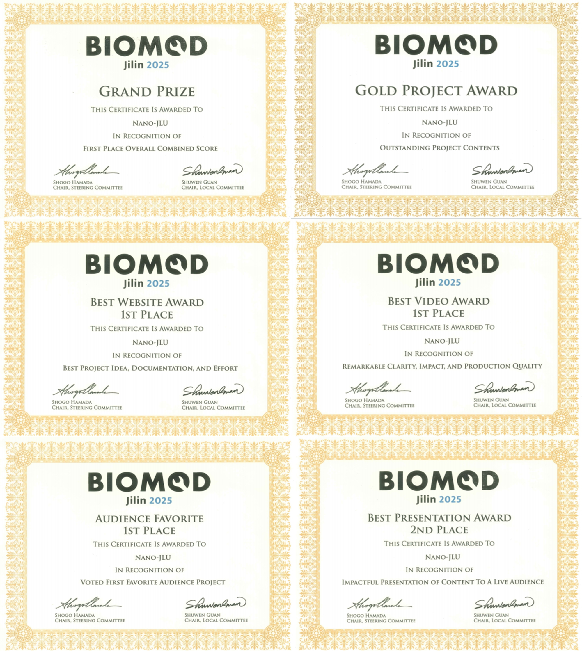 Nano-JLU团队表现卓越,不仅蝉联综合总分第一名(Grand Prize特等奖),更斩获五项单项大奖,成为此次赛事最大赢家,也实现了中国大学代表队在该赛事中的首次蝉联冠军。