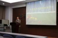 王明荣教授首先简单介绍了自己的研究方向——“癌变机理与靶向治疗的基础研究”,随后对此领域的研究思路及相关研究方向展开详细的解说。王教授用轻松幽默的语言将原本枯燥乏味的学术简介扩展成了一堂生动有趣的研讨课,将科研进展与应用实例相结合,极大地激发了学生们的对于癌变机理与相关治疗的基础研究的兴趣。王教授还亲切的教育大家学术上不能造假,要讲诚信,基础学科的发展就在于脚踏实地地作研究;知之为知之,不知为不知,方能在未来的道路上取得长足发展,令与会全体成员深受启发。