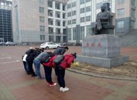 清明时节雨纷纷,却也淋不灭同学们对祭扫活动的热情。随着活动的开始,同学们在雨中悼念沉思,回忆着这一个又一个科学巨匠的贡献,感受他们坚持不懈,潜心钻研的精神的洗礼,随后在场的学生们向科学家们的雕像鞠躬致敬,并依次献上了满载内心崇拜与敬意的鲜花。