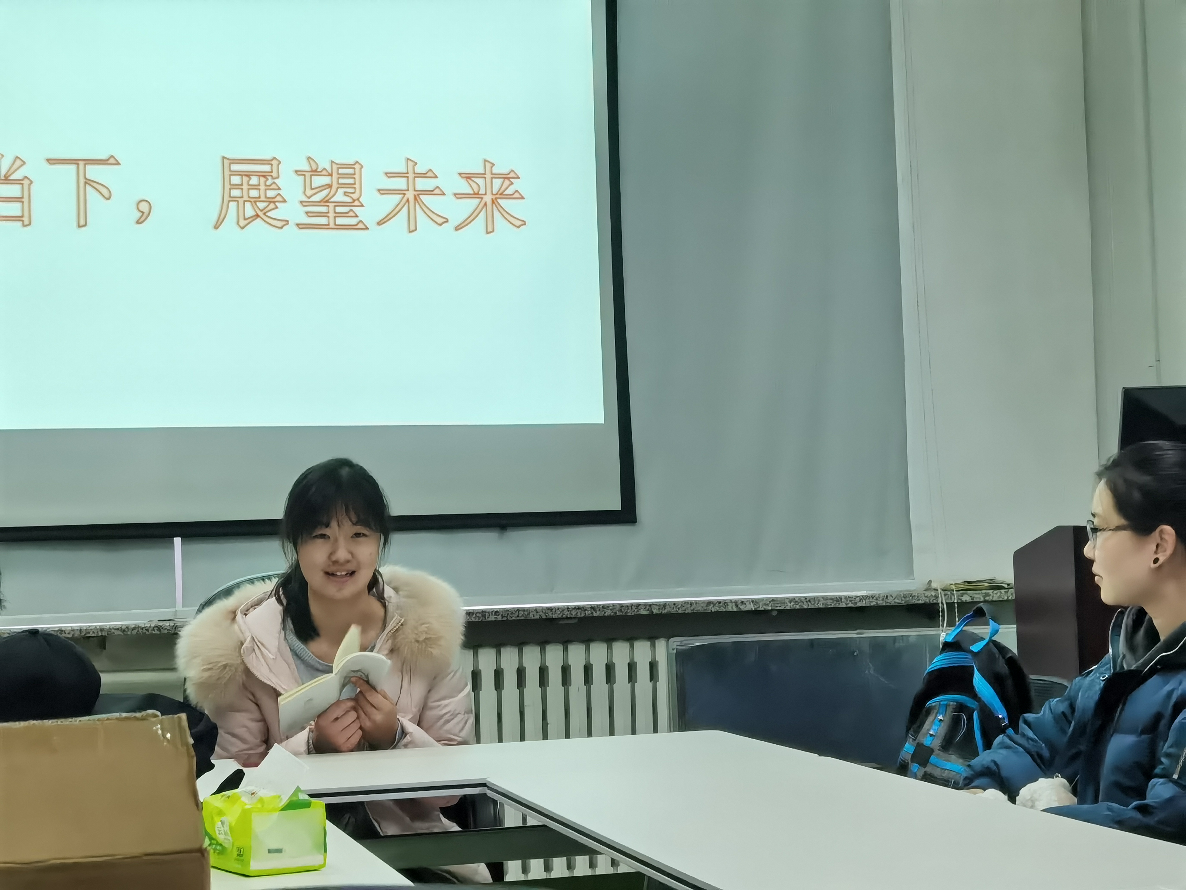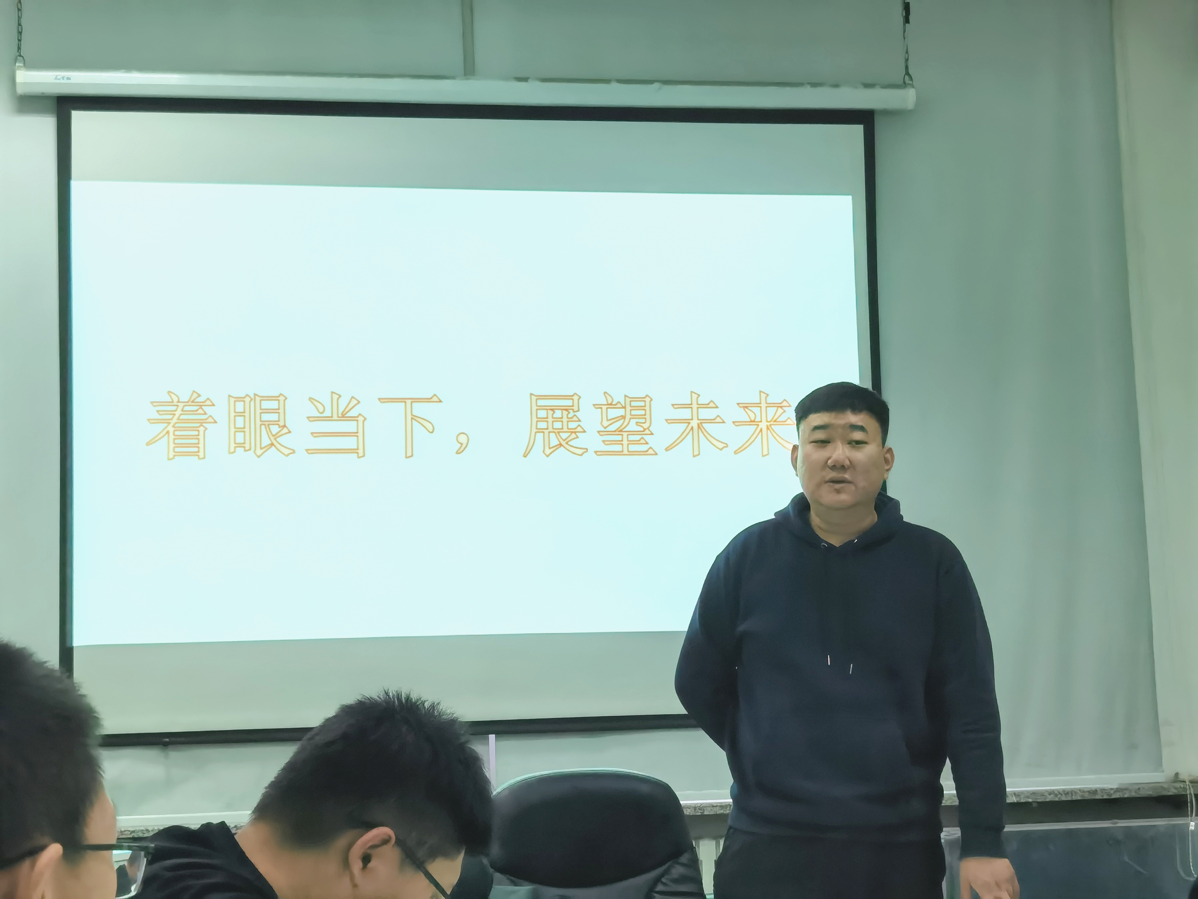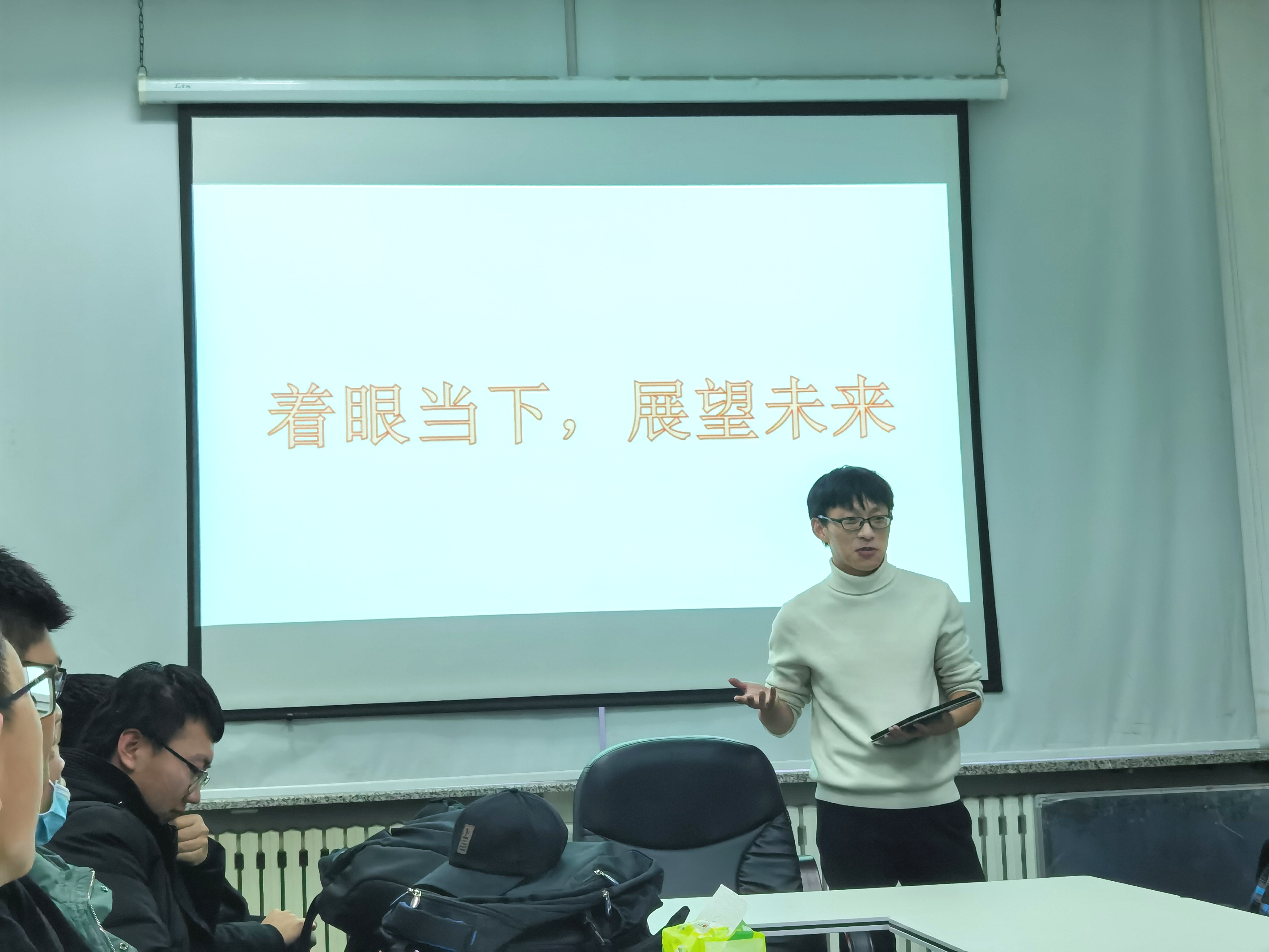 2020级1班全体在生命科学楼406会议室举办了以“着眼当下,展望未来”主题班会。班主任侯阿澧老师、辅导员齐鹏老师、苏老师以及优秀学生代表黄莹莹同学和马宇同学参与此次会议。