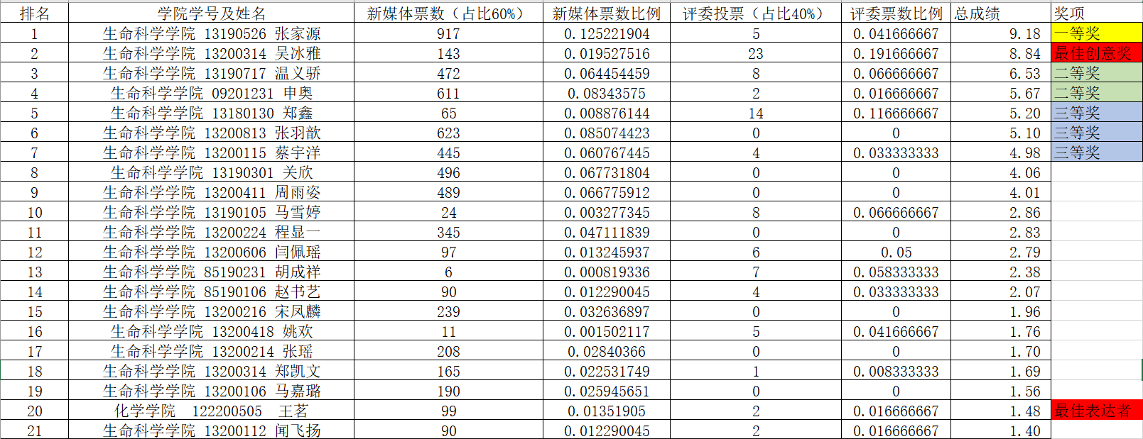 由线上投票(60%)及线下评审团投票(40%)相加得出