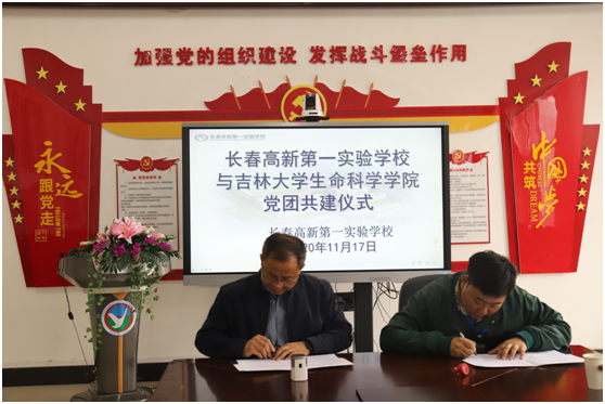 与长春高新第一实验学校党团共建交流暨大学生志愿服务基地签约仪式在高新第一实验学校会议室举行。参加签约仪式的有长春高新第一实验学校校长兼党支部书记张安辉、党支部副书记李兰君、党政办公室主任魏盛楠,快猫视频