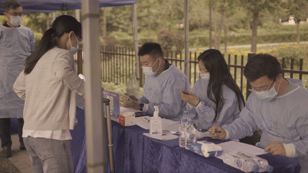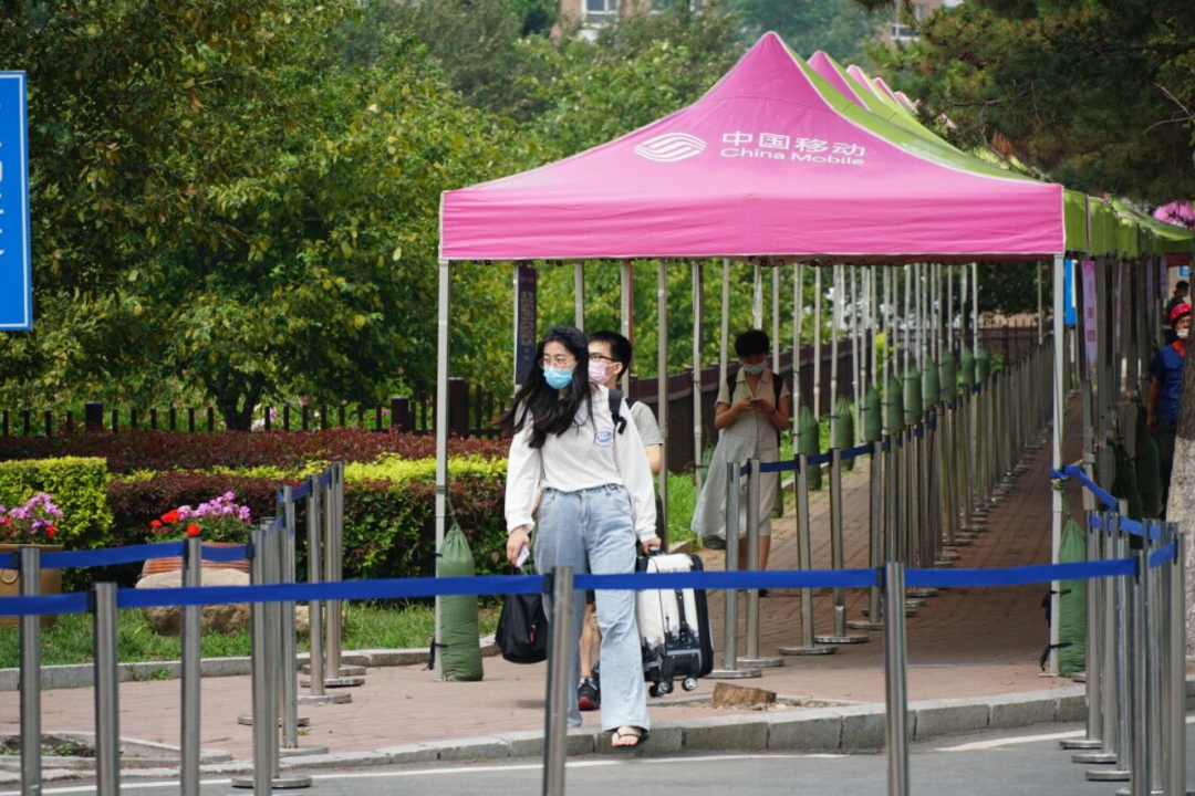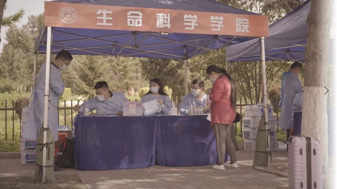 学院党委副书记崔帅、2016级辅导员马莹、2019级辅导员齐鹏、辅导员刘春天四位老师早早地就在北门搭起了接待棚