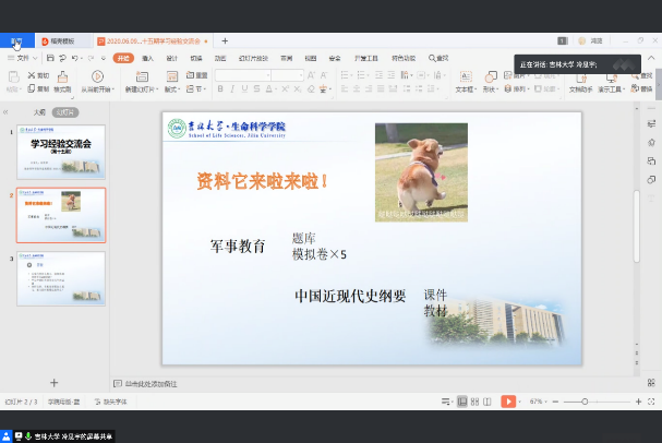学业发展部于6月9日和6月10日在腾讯会议举办了第十五期学习经验交流会,邀请了冷思宇、陈继坤、许雯雯、姚语萱、黎剑、戴兴邦和苗瑞七位18级学长学姐作为学业领航员,为19级的全体同学们答疑解惑,讲授期末考试的复习技巧。