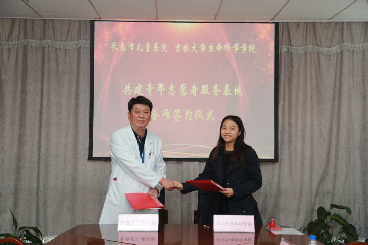 共建青年志愿者服务基地协议书”。吉林省儿童医疗中心、长春市儿童医院院长兼党委书记姜洪波、护理部主任张朋、门诊办主任魏志刚、社工部主任谭璐作为儿童医院代表,快猫视频