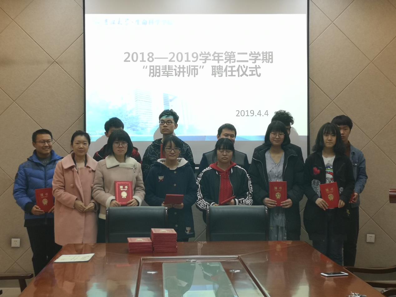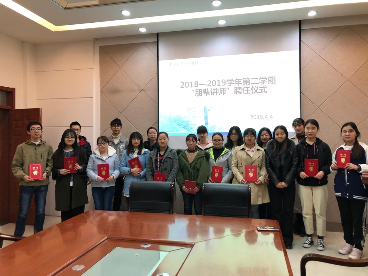2018-2019学年第二学期朋辈讲师聘任仪式。学院党委副书记崔帅、学工办主任张春阳、辅导员马莹以及2019年快猫视频