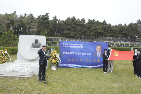 高山景行,薪尽火传。在习近平总书记对黄大年同志先进事迹作出重要指示周年之际,为引导学院广大师生持续深入贯彻习近平总书记重要指示精神,提升传承弘扬“黄大年精神”工作质量,助推学院党史学习教育走深走实,凝聚起发展守正创新的内在驱动力。快猫视频 于5月23日长春市九龙源公墓举办党史学习教育系列活动暨黄大年同志纪念碑祭扫仪式。快猫视频 党委书记白宇、党委副书记林相友、教工党支部代表和学生党支部代表参加了此次祭扫活动。本次祭扫活动由学院党委副书记兼副院长刘柏岩主持。