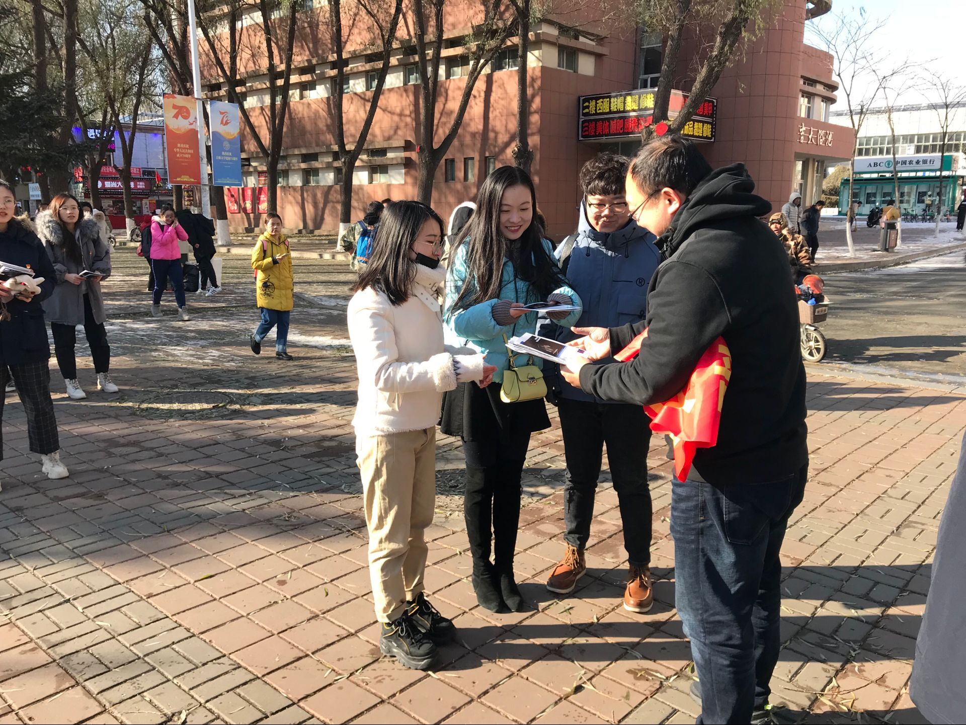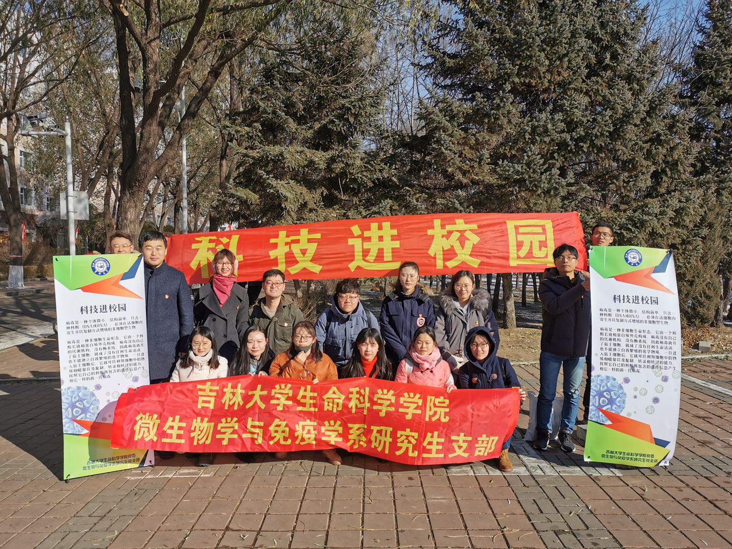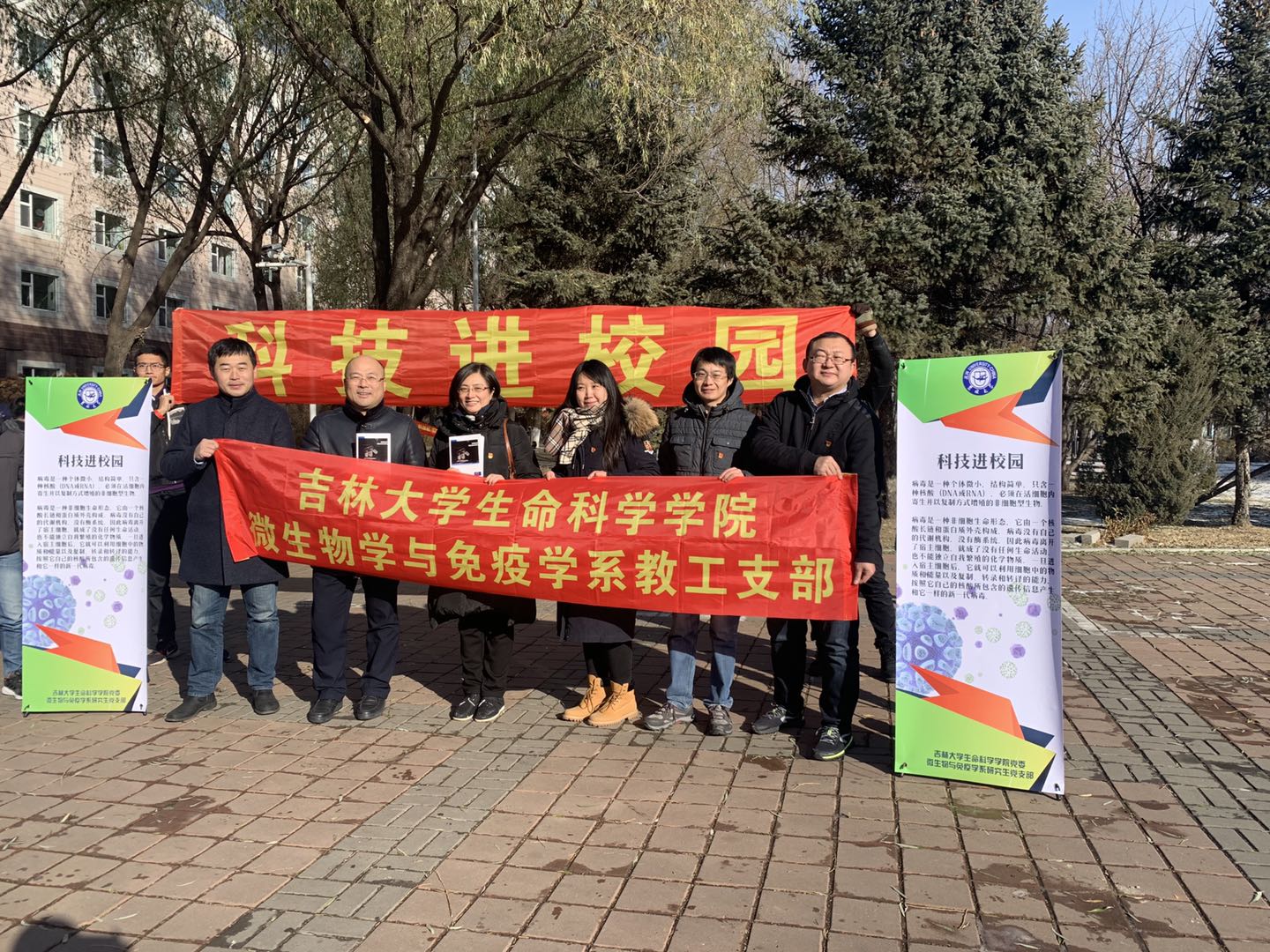 前卫校区中心体育馆门前举办,吸引了大批的学生驻足聆听,活动现场展出了科普报告,营造了浓厚的科技氛围,引导师生们积极参与。党员们为大家分发的科普宣传手册近百余份,并认真为身边的每一个人讲解艾滋病相关知识,普及艾滋病预防的方法。