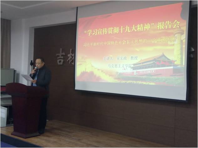 学院党委书记李佰志同志在总结时提出,吴宏政教授的报告深入浅出,将马克思主义的指导思想与习近平新时代中国特色社会主义思想联系在一起,让大家更加清楚地认识和了解到习近平总书记在十九大报告中的指示,获益良多。并希望全院党员要认真学习党的十九大精神主旨,在工作和学习中秉承党员的积极性及先进性,为尽快实现中国由富起来到强起来的伟大征程而不懈努力!