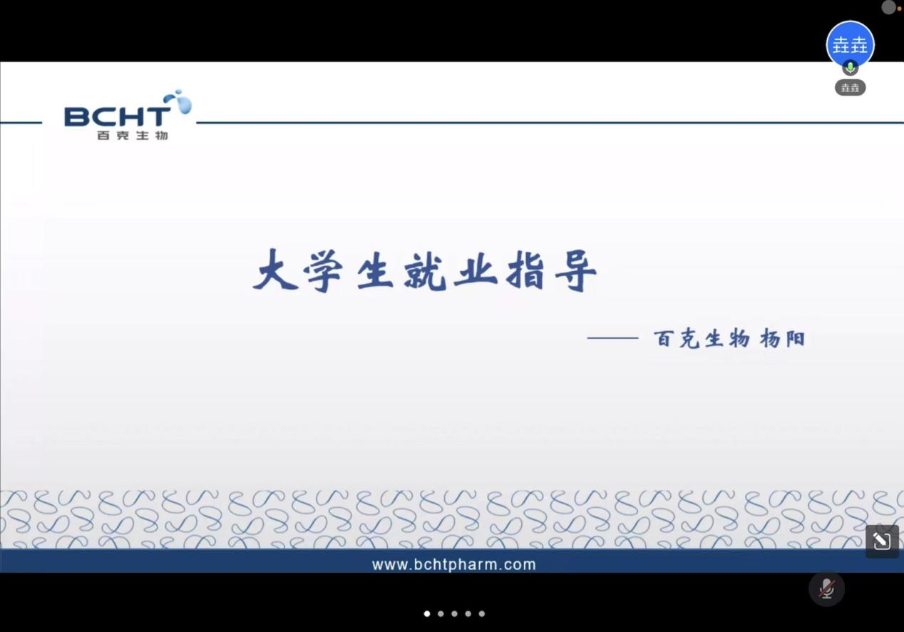 组织开展了“疫”路同行 “职”为有你 “积极就业向未来”百克生物线上宣讲会暨就业指导讲座。活动邀请百克生物人力资源部副经理杨阳线上讲座,快猫视频