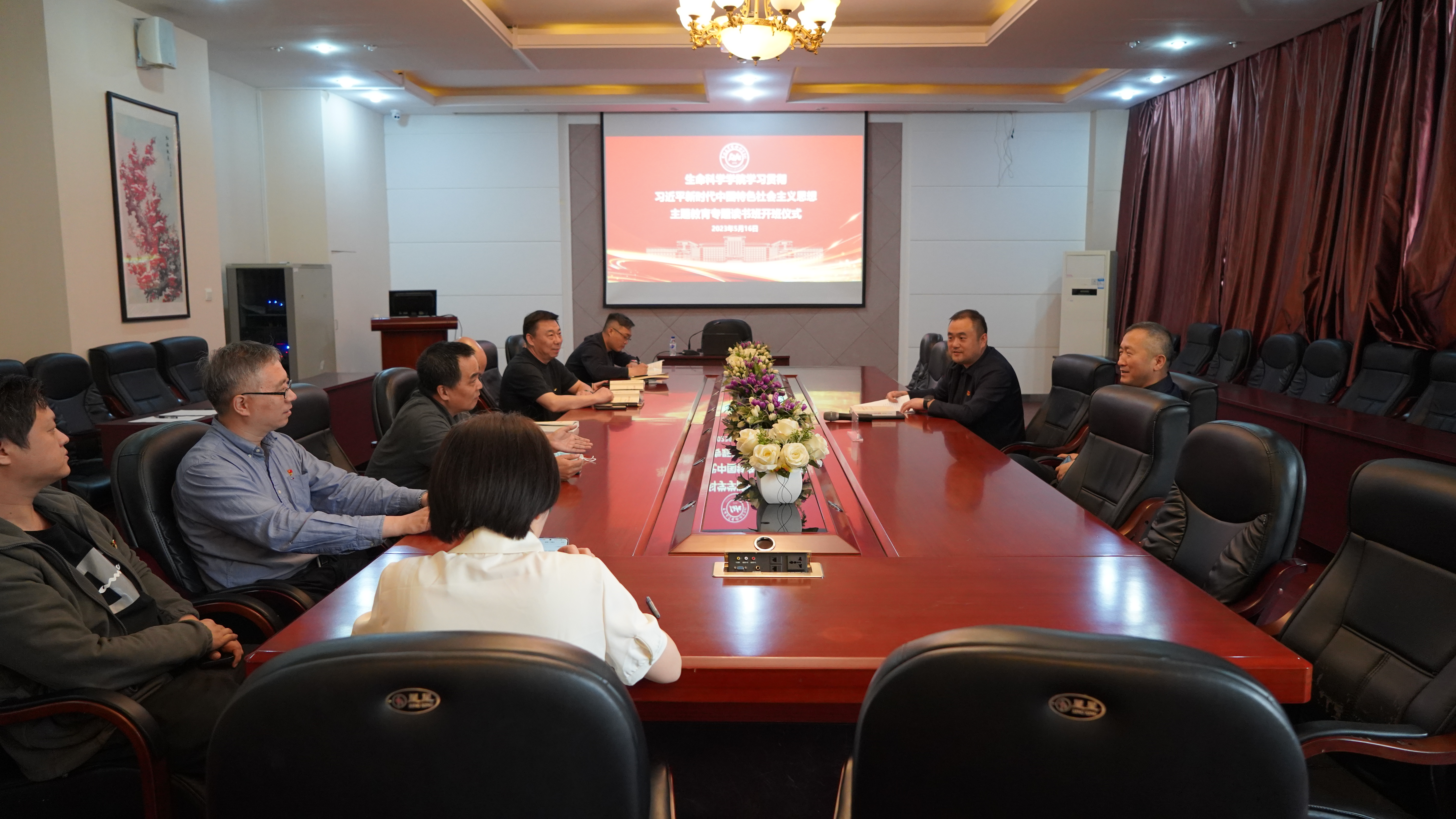 为推动学习贯彻习近平新时代中国特色社会主义思想主题教育有力有序、扎实有效开展,5月16日,快猫视频 召开党委理论学习中心组(扩大)会议暨学习贯彻习近平新时代中国特色社会主义思想主题教育专题读书班开班仪式。快猫视频 党委委员、各支部书记参加会议,快猫视频 哲学社会学院教授田毅鹏应邀出席并作主题发言,会议由党委书记白宇主持。